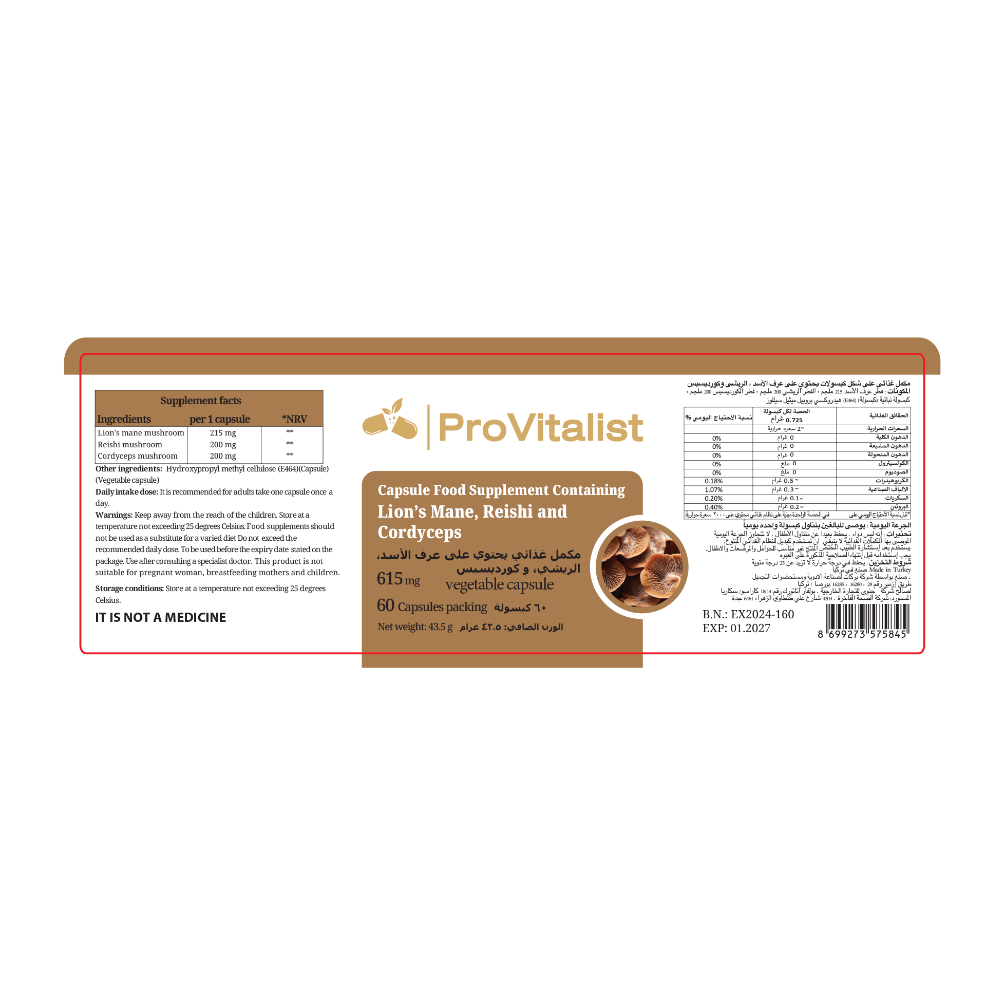 مزيج متكامل من أقوى أنواع الفطر الطبي مثل الريشي،وعرف الاسد ، والكورديسيبس، في تركيبة واحدة تدعم الجسم والعقل معًا.