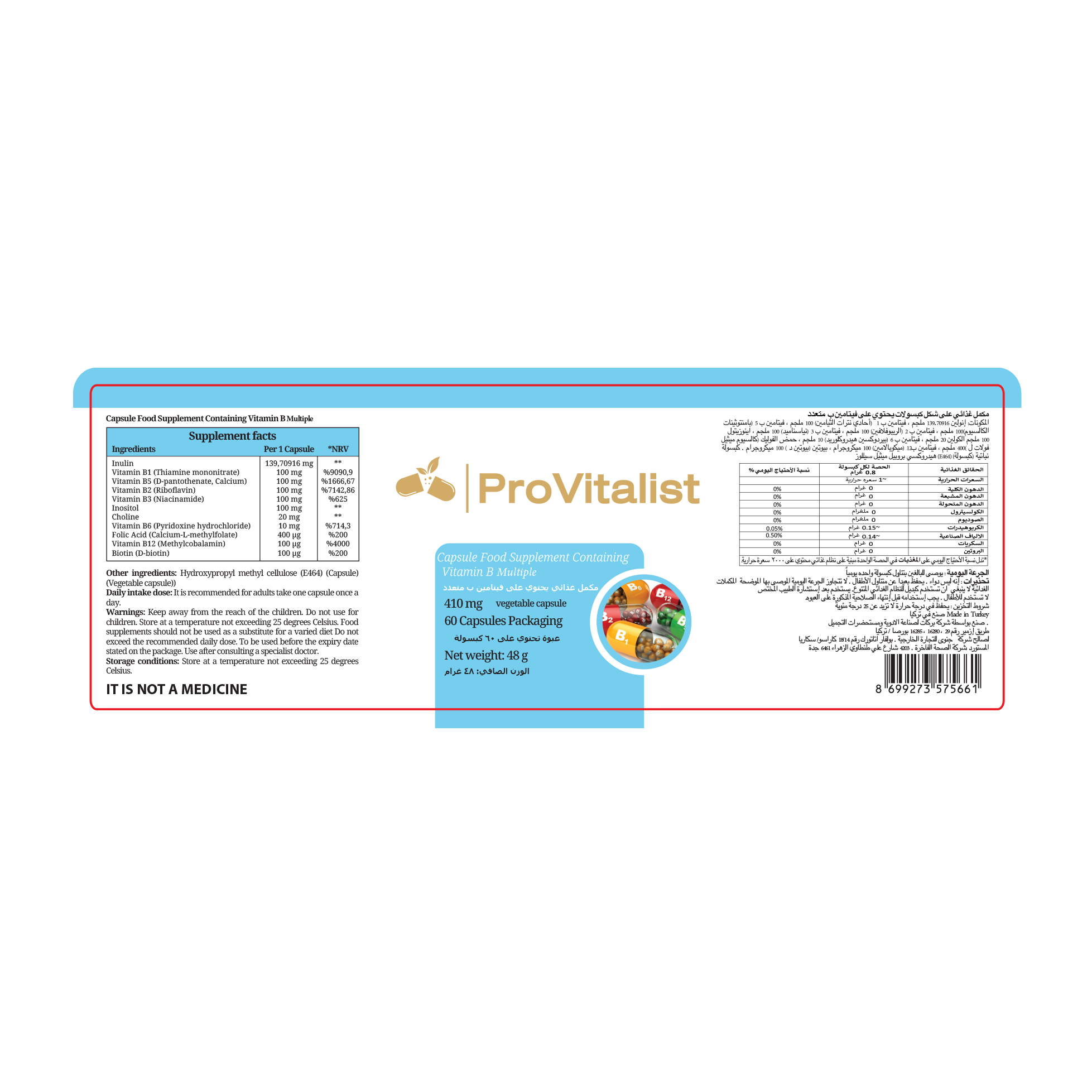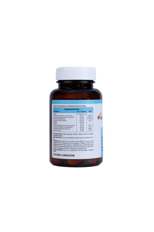 يضم هذا المكمل جميع فيتامينات B الضرورية، بما في ذلك B1، B2، B3، B5، B6، B7 (بيوتين)، B9 (حمض الفوليك في صيغة ميثيل وB12، والتي تلعب دورًا حيويًا في دعم مستويات الطاقة، تعزيز صحة الجهاز العصبي، وتحسين صحة البشرة والشعر.